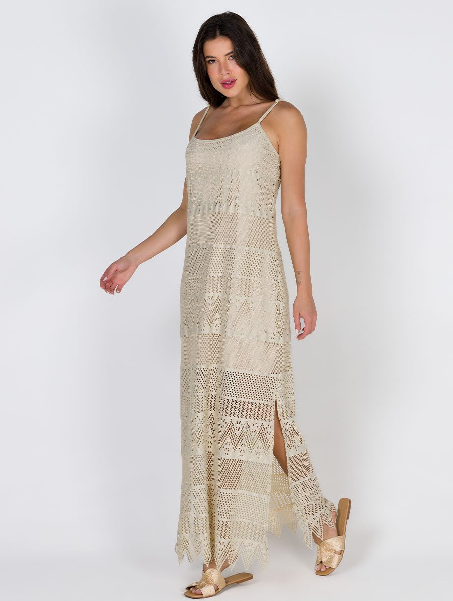 O Vestido Alcinha Longo com Fendas Laterais Renda é a escolha ideal para quem busca leveza e elegância em uma única peça. Este vestido é perfeito para compor looks frescos e sofisticados, sendo uma peça-chave para dias de praia ou passeios ao ar livre.